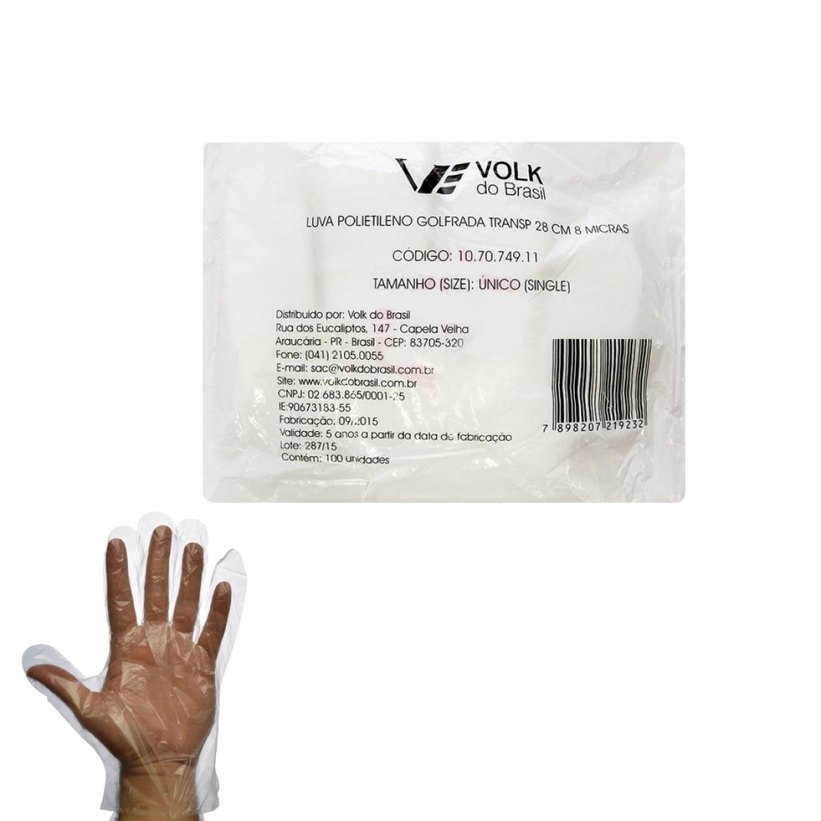 LUVA DE POLIETILENO GOFRADA PACOTE COM 100 UNIDADES VOLK